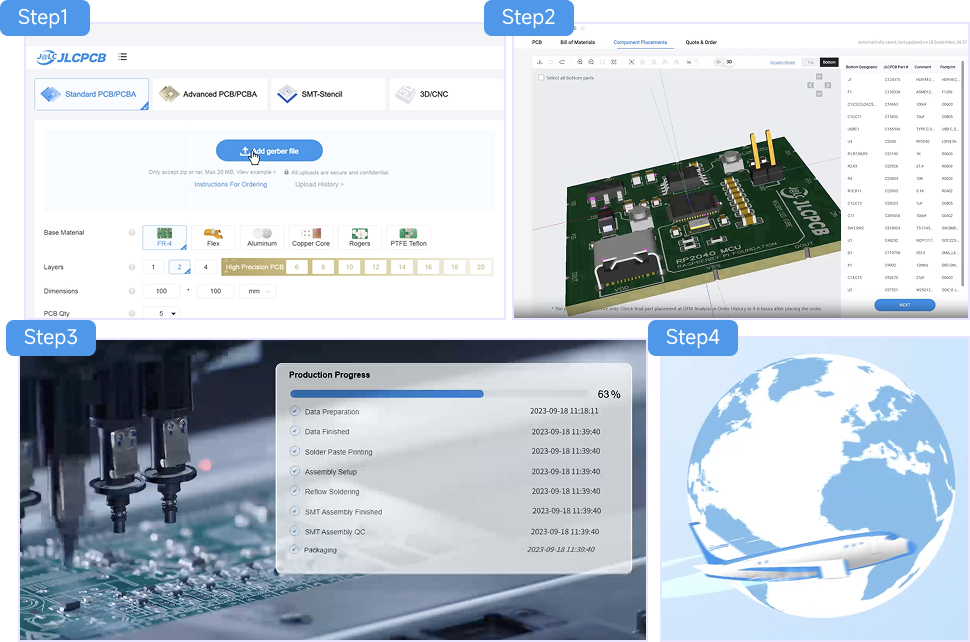 At JLCPCB, making your circuit board is a breeze. Start by uploading your design files on our intuitive platform. Then, select your board's specifications and materials to match your project needs. Confirm your order and let our skilled team manage production with care. Enjoy fast turnaround times, competitive pricing, and quality assurance every step of the way for guaranteed success.