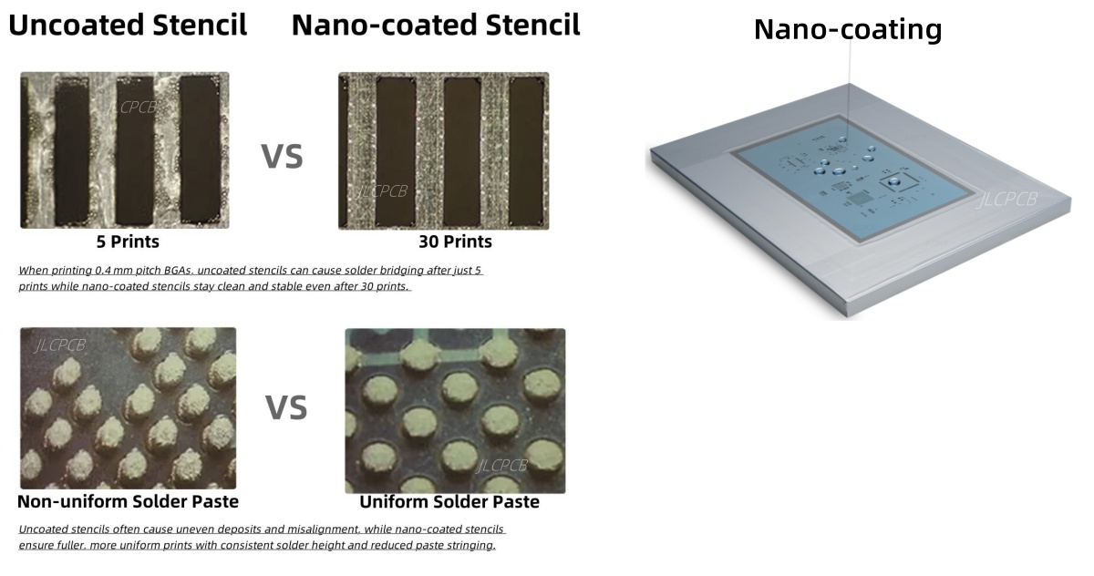 Nano-coating enhances paste release and ensures cleaner, more consistent prints. It’s highly recommended for PCBs with BGA, QFN, or other fine-pitch components.